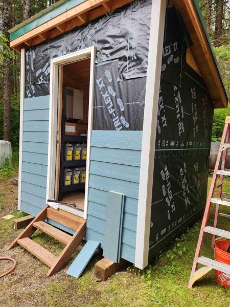 First week - Returned to place the front porch on an existing cabin and install siding on the new battery shed.